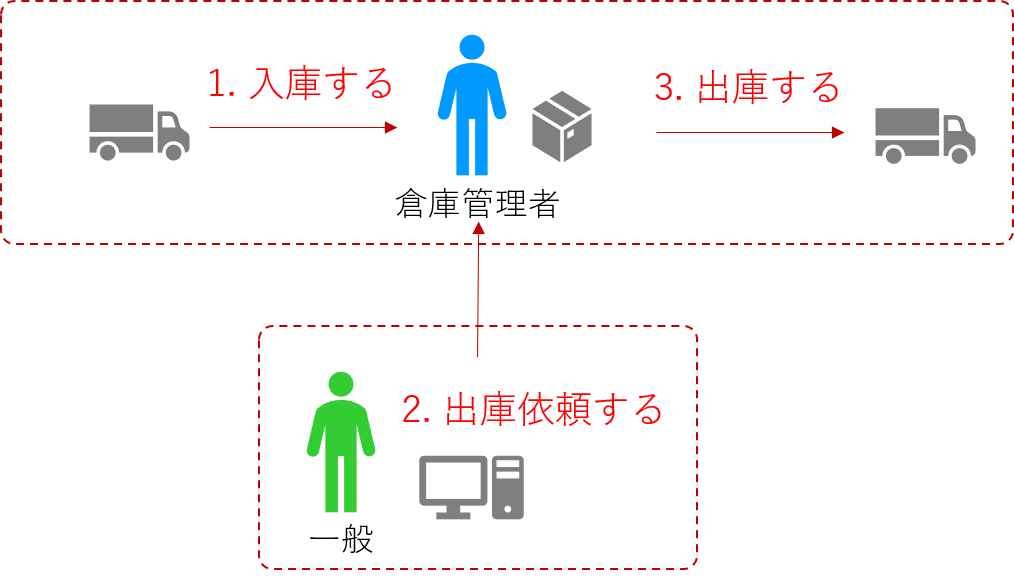 在庫express-webの申し込み時に取得したシステム管理者用のログインIDを使って、倉庫管理者と一般ユーザの一人二役で使ってみましょう。